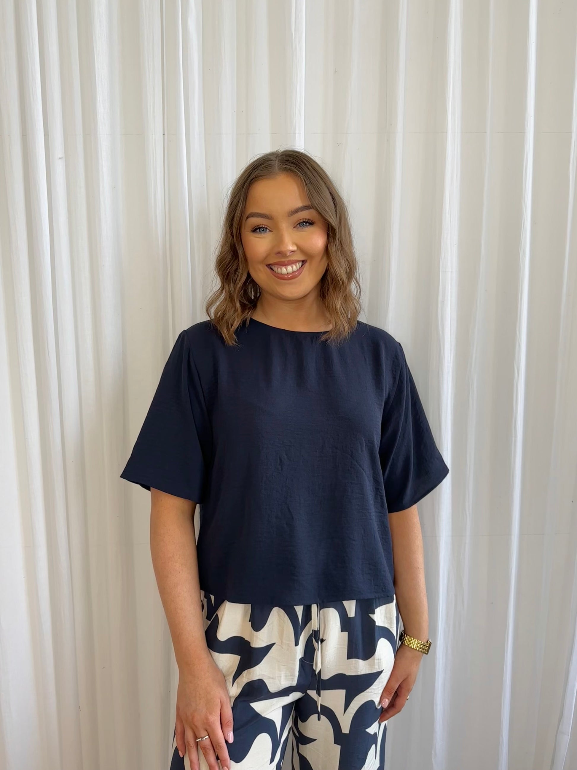 A new staple in the Grace & Mila collection. With its 3/4 sleeves and lightweight drape, the serena MARINE TOP enhances the femininity and elegance of the piece. The round neckline and casual fit make it flattering for all body types.